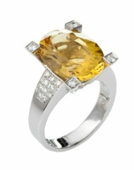 Beryll Cocktailring mit Diamanten in 750er Weissgold